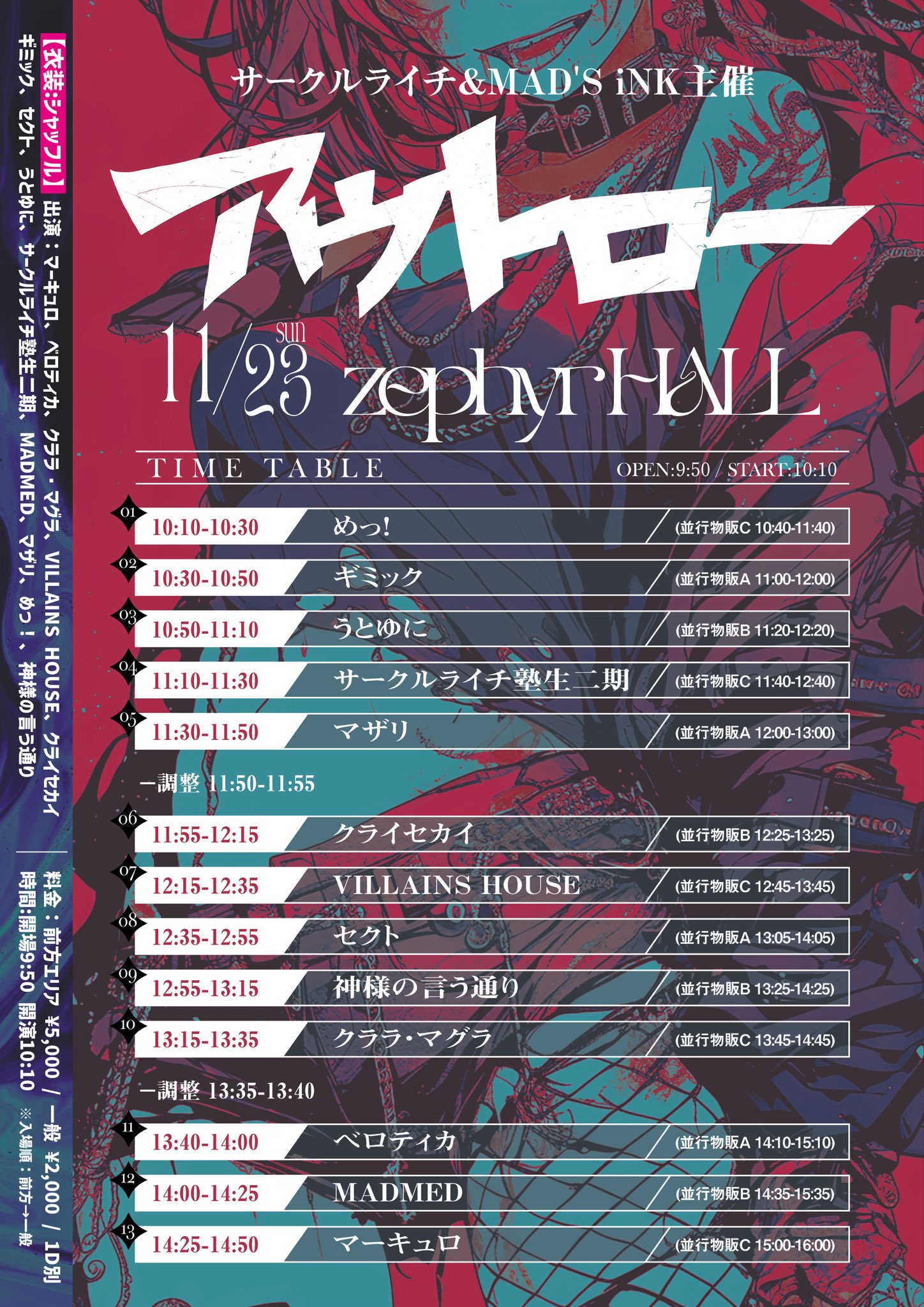 「サークルライチ&MAD'S iNK主催『アウトロー』」 日時 2025.11.23(日) 会場 Ze […]