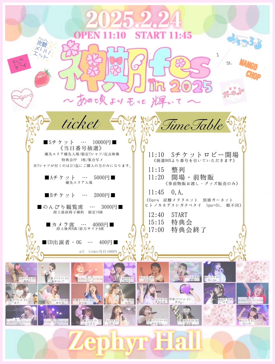 11:30 AM - 5:00 PM 神期fes in2025 ~あの頃よりもっと輝いて~ 2月 24 @ 11:30 AM - 5:00 PM 神期fes in2025 ~あの頃よりもっと輝いて~ 神期fes in2025 ~あの頃よりもっと輝いて~ 会場 : ZephyrHall 開場 : 11:10 開 […]