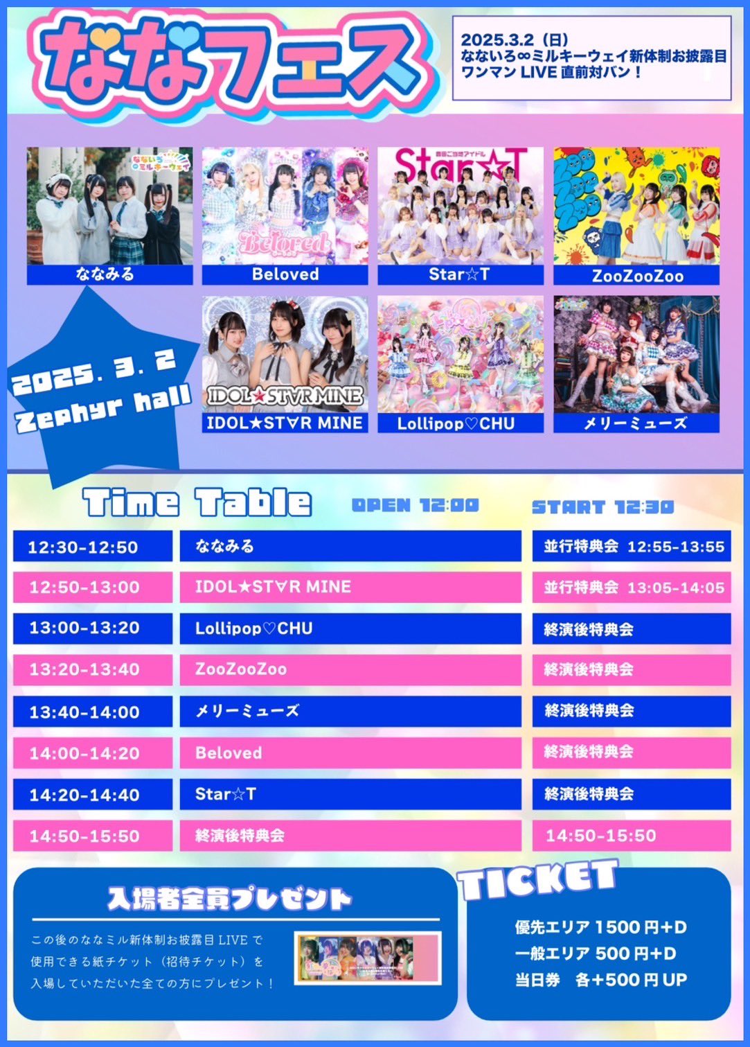 5:00 PM - 9:30 PM なないろ∞ミルキーウェイ新体制お披露目LIVE〜虹色の夢の続きを描こう〜 3月 2 @ 5:00 PM - 9:30 PM なないろ∞ミルキーウェイ新体制お披露目LIVE〜虹色の夢の続きを描こう〜 出演者 なないろ∞ミルキーウェイ 日 程 2025/3/2(日) 開場日時 17:00 開演日時 17:30 […]