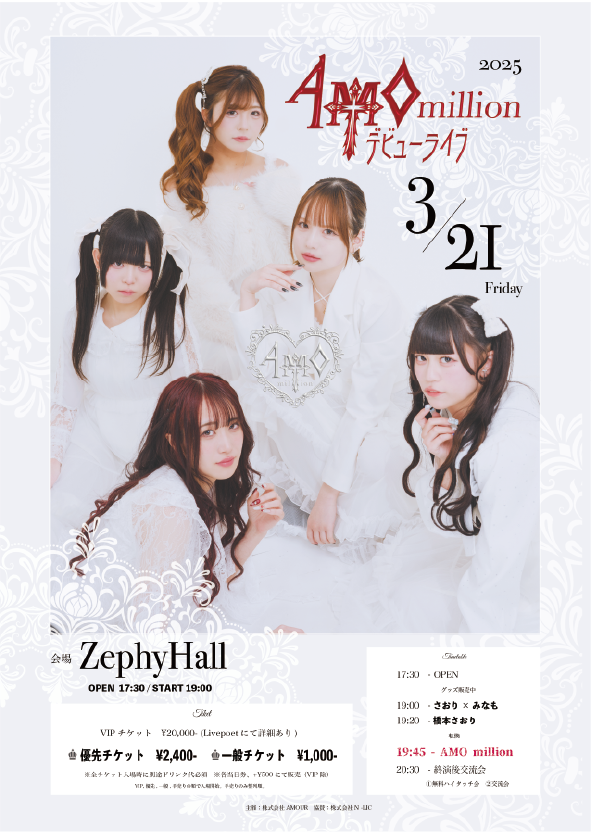 5:30 PM - 11:30 PM AMO million デビューライブ 3月 21 @ 5:30 PM - 11:30 PM AMO million デビューライブ 【 AMOmillion デビューライブ 】 日時:2025年3月21日(金) 会場:Zephyrhall 開 […]