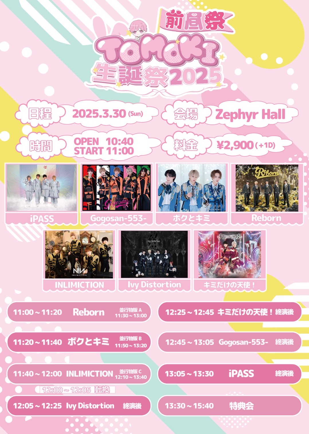 10:30 AM - 3:00 PM TOMOKI生誕祭~前昼祭~ 3月 30 @ 10:30 AM - 3:00 PM TOMOKI生誕祭~前昼祭~ 【3月30日(日)】 『TOMOKI生誕祭~前昼祭~』 会場 Zephyr HALL 料金 2,900円(+1 […]