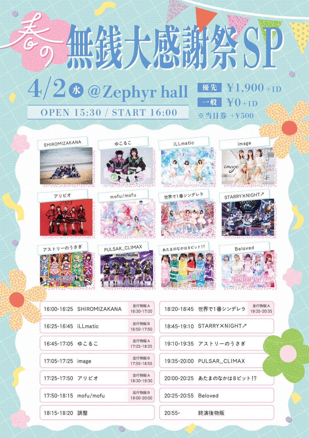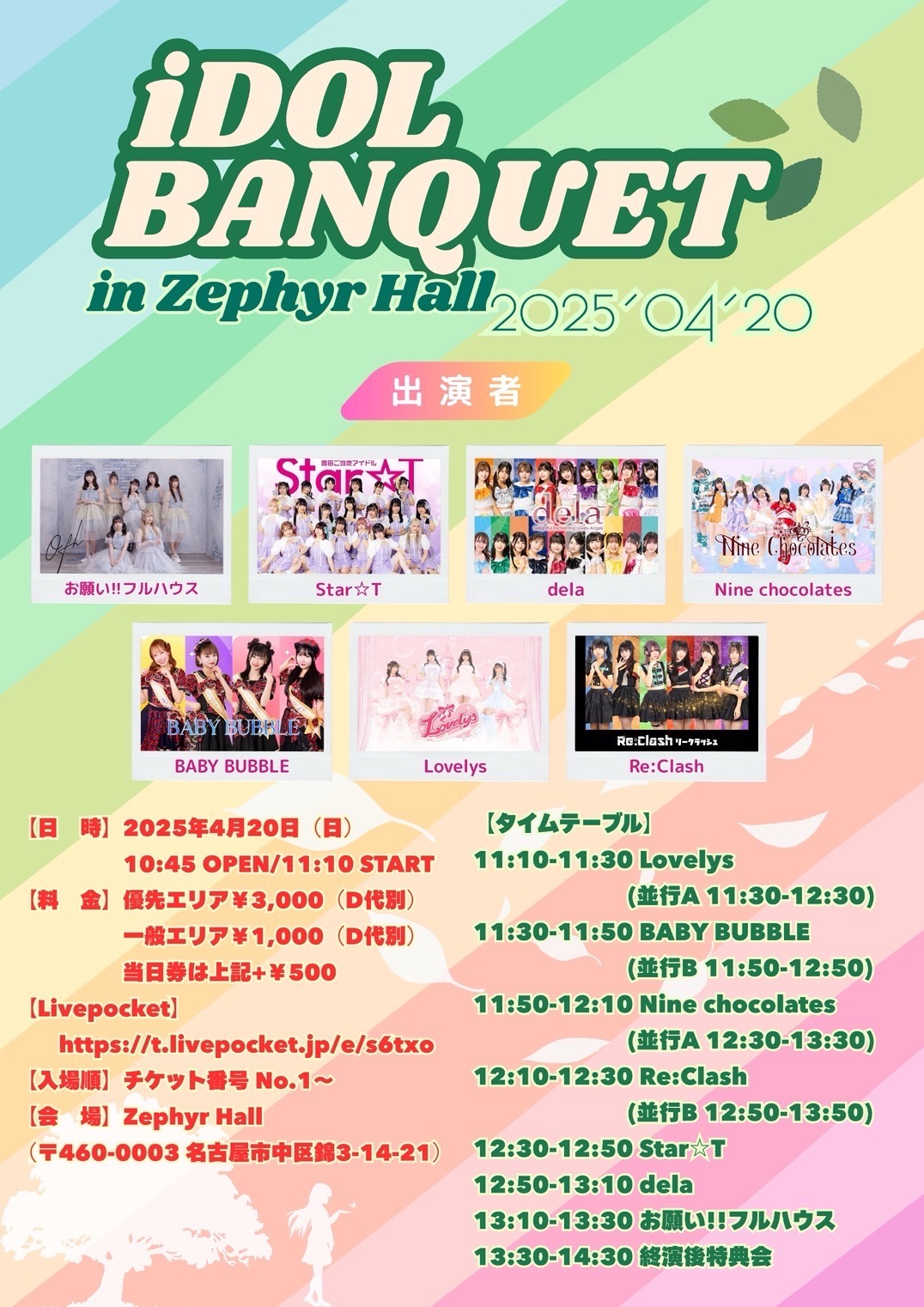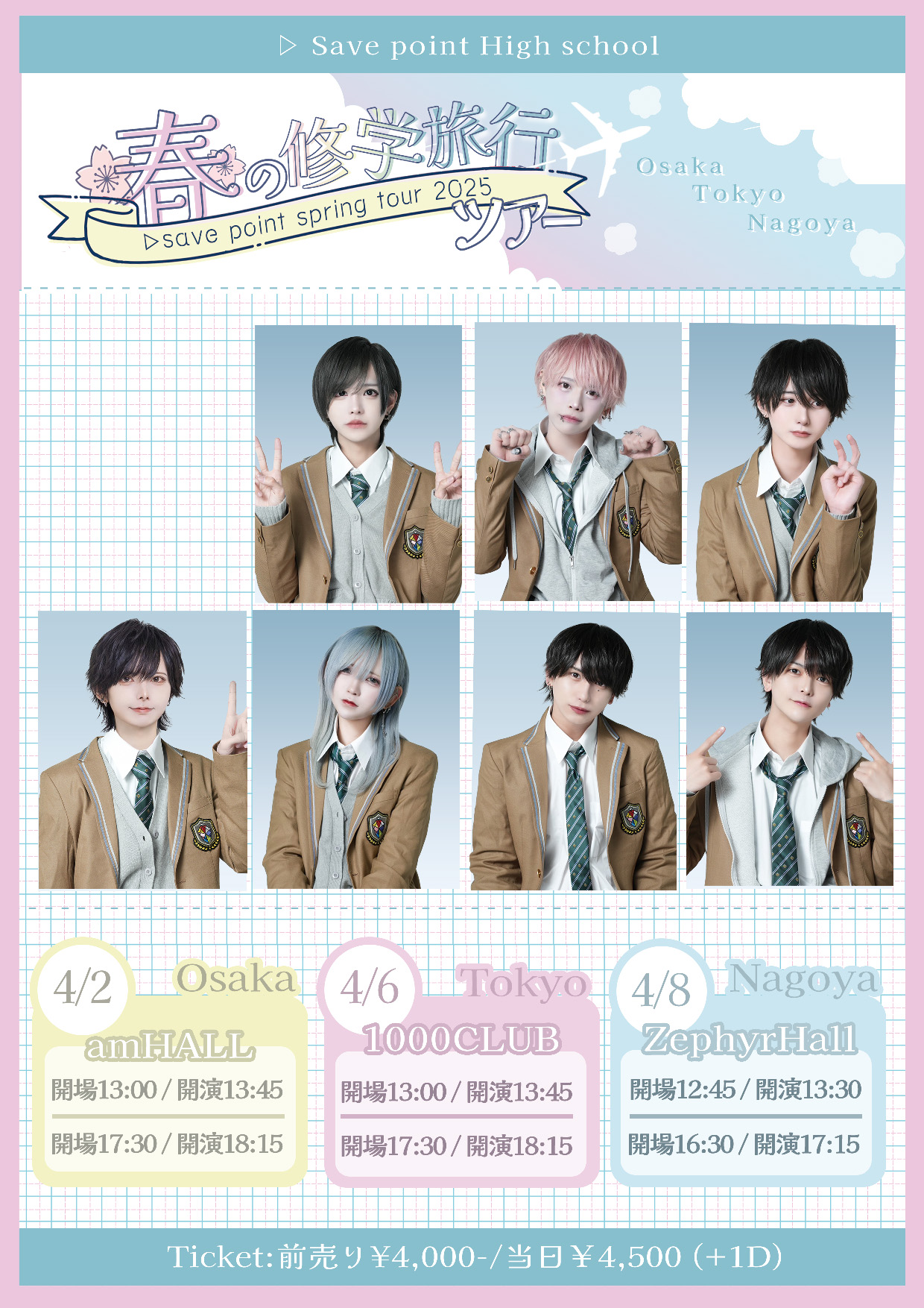 12:30 PM - 9:30 PM 『春の修学旅行ツアーin名古屋【FINAL】』(▷ せーぶぽいんと単独公演) 4月 8 @ 12:30 PM - 9:30 PM 『春の修学旅行ツアーin名古屋【FINAL】』(▷ せーぶぽいんと単独公演) 4/8(火)『春の修学旅行ツアーin名古屋【FINAL】』 ◾会場:Zephyr Hall ◾時間 OPEN1 […]