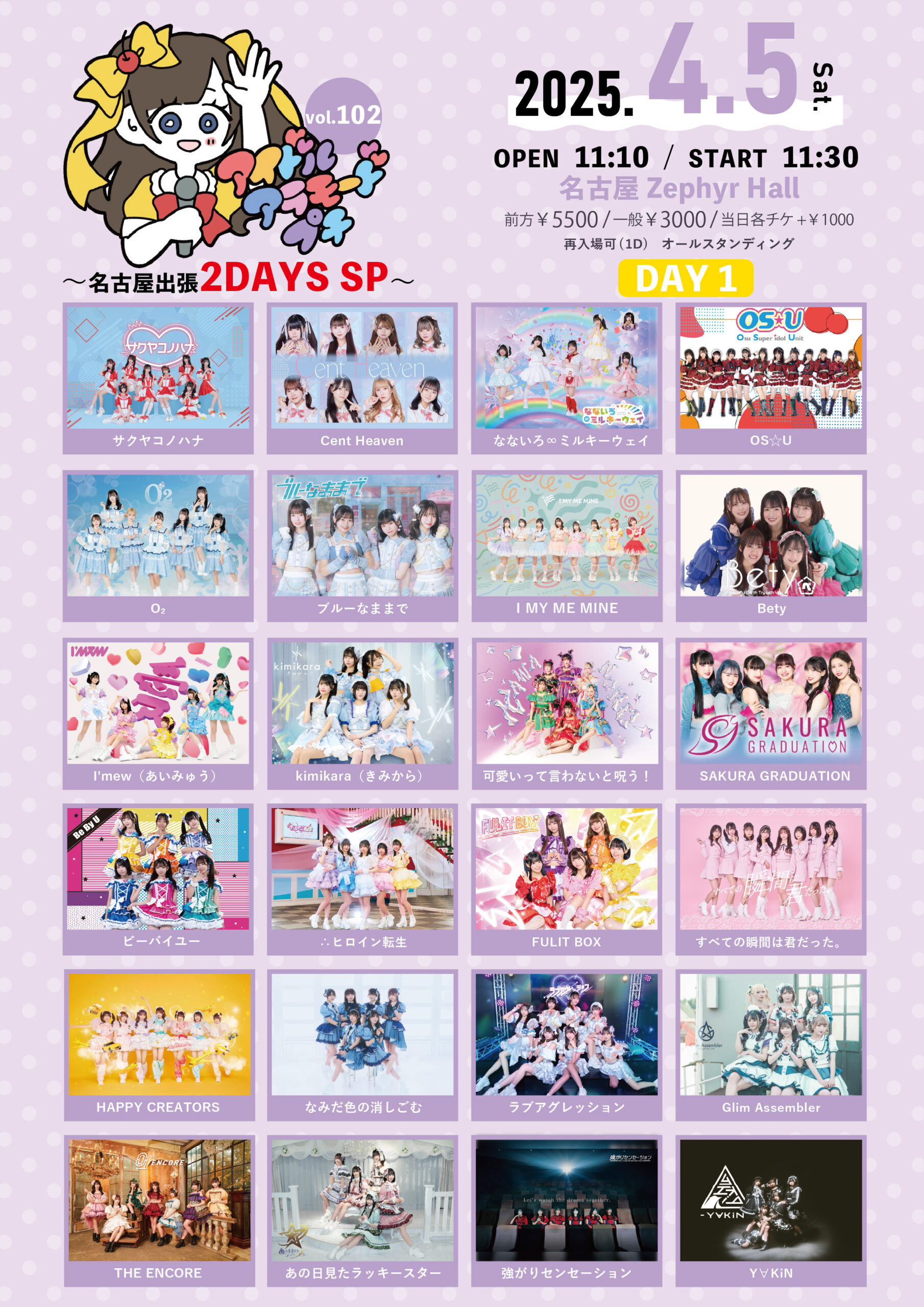 11:00 AM - 9:30 PM アイドルアラモードプチVol.102~名古屋出張2DAYS SP~ DAY1 4月 5 @ 11:00 AM - 9:30 PM アイドルアラモードプチVol.102~名古屋出張2DAYS SP~ DAY1 【アイドルアラモードプチVol.102~名古屋出張2DAYS SP~ DAY1】 ■日程 2025年4月5日( […]