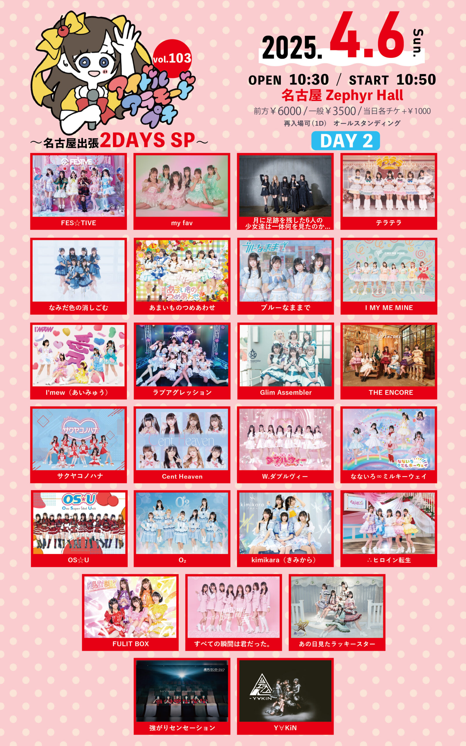 10:30 AM - 9:30 PM アイドルアラモードプチVol.103~名古屋出張2DAYS SP~ DAY2 4月 6 @ 10:30 AM - 9:30 PM アイドルアラモードプチVol.103~名古屋出張2DAYS SP~ DAY2 【アイドルアラモードプチVol.103~名古屋出張2DAYS SP~ DAY2】 ■日程 2025年4月6日( […]