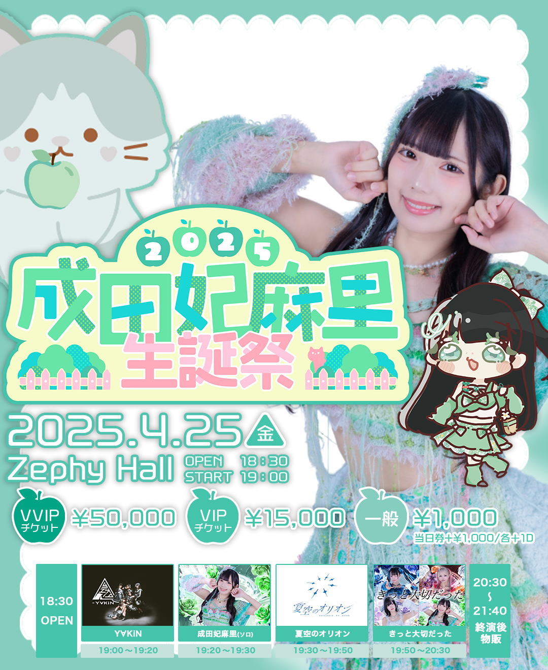 6:30 PM - 9:30 PM 成田妃麻里生誕祭2025 4月 25 @ 6:30 PM - 9:30 PM 成田妃麻里生誕祭2025 『成田妃麻里生誕祭2025』 ■日時:4月25日(金) ■会場:Zephyr Hall ■時間:開場18:30 […]