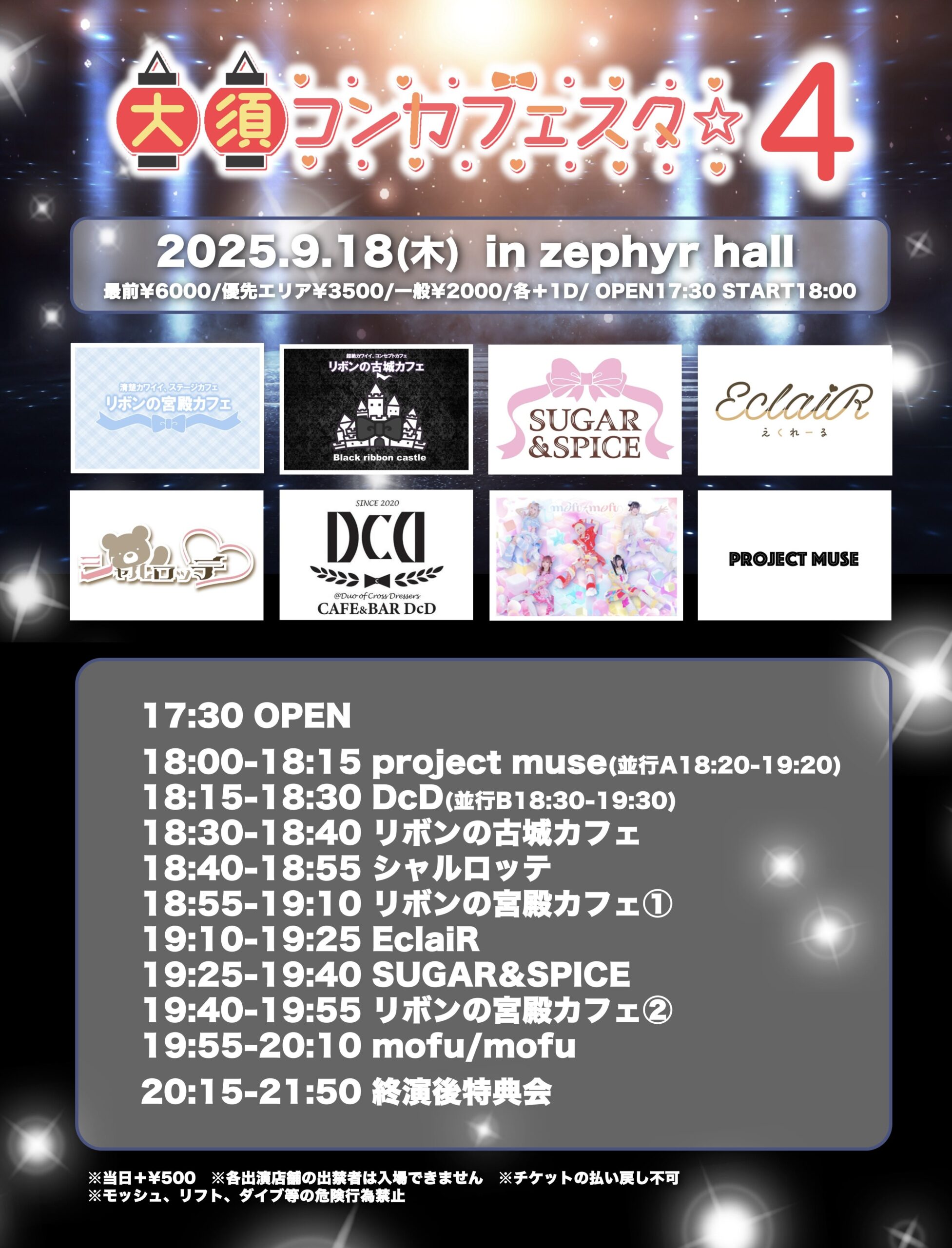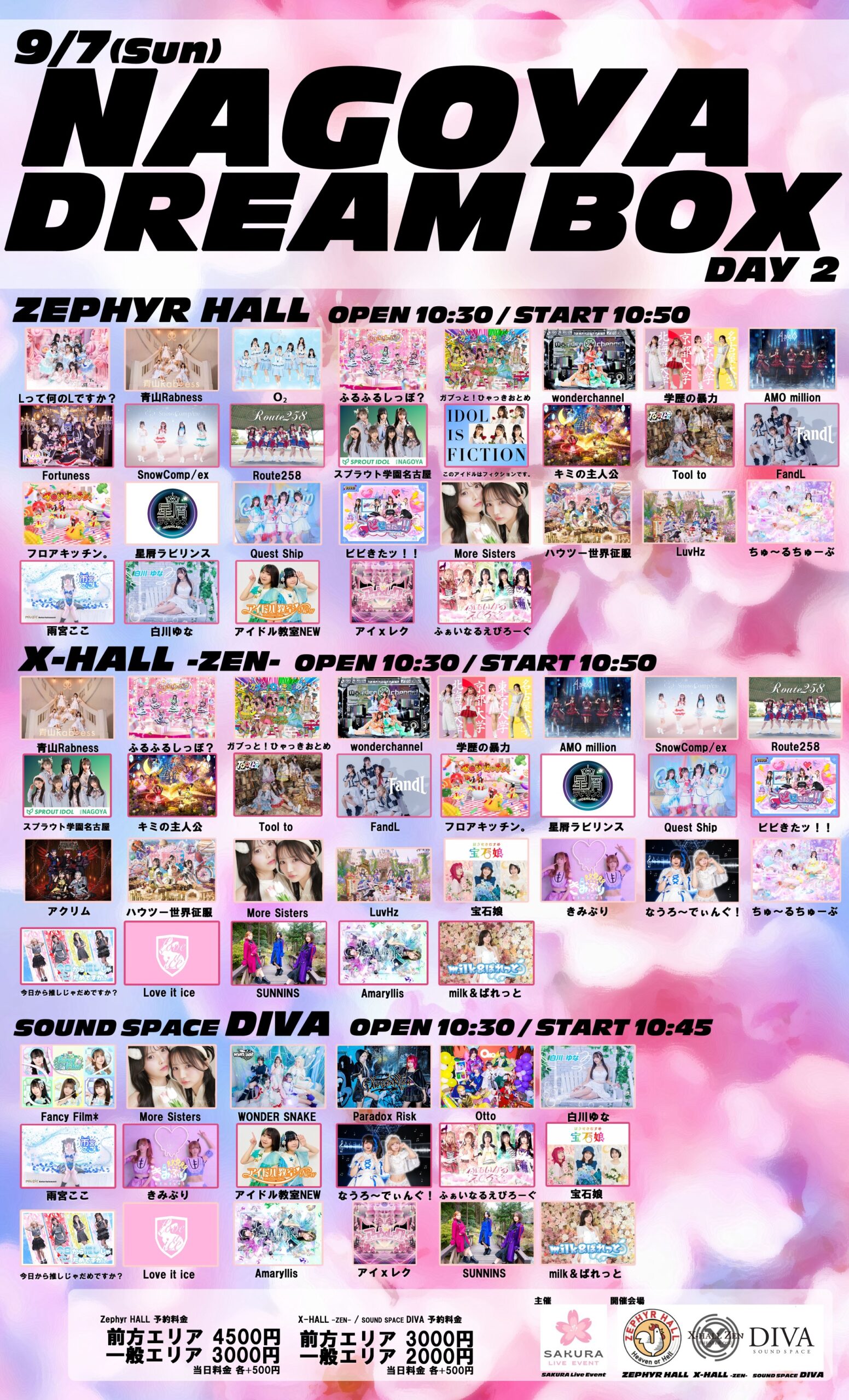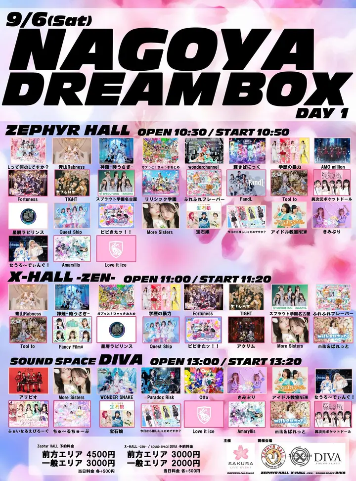 10:30 AM - 9:30 PM NAGOYA DREAMBOX DAY2 9月 7 @ 10:30 AM - 9:30 PM NAGOYA DREAMBOX DAY2 公演日時 2025/9/7(日) 開場時刻 10:30 / 開演時刻 10:50 会場 Zephyr HALL […]