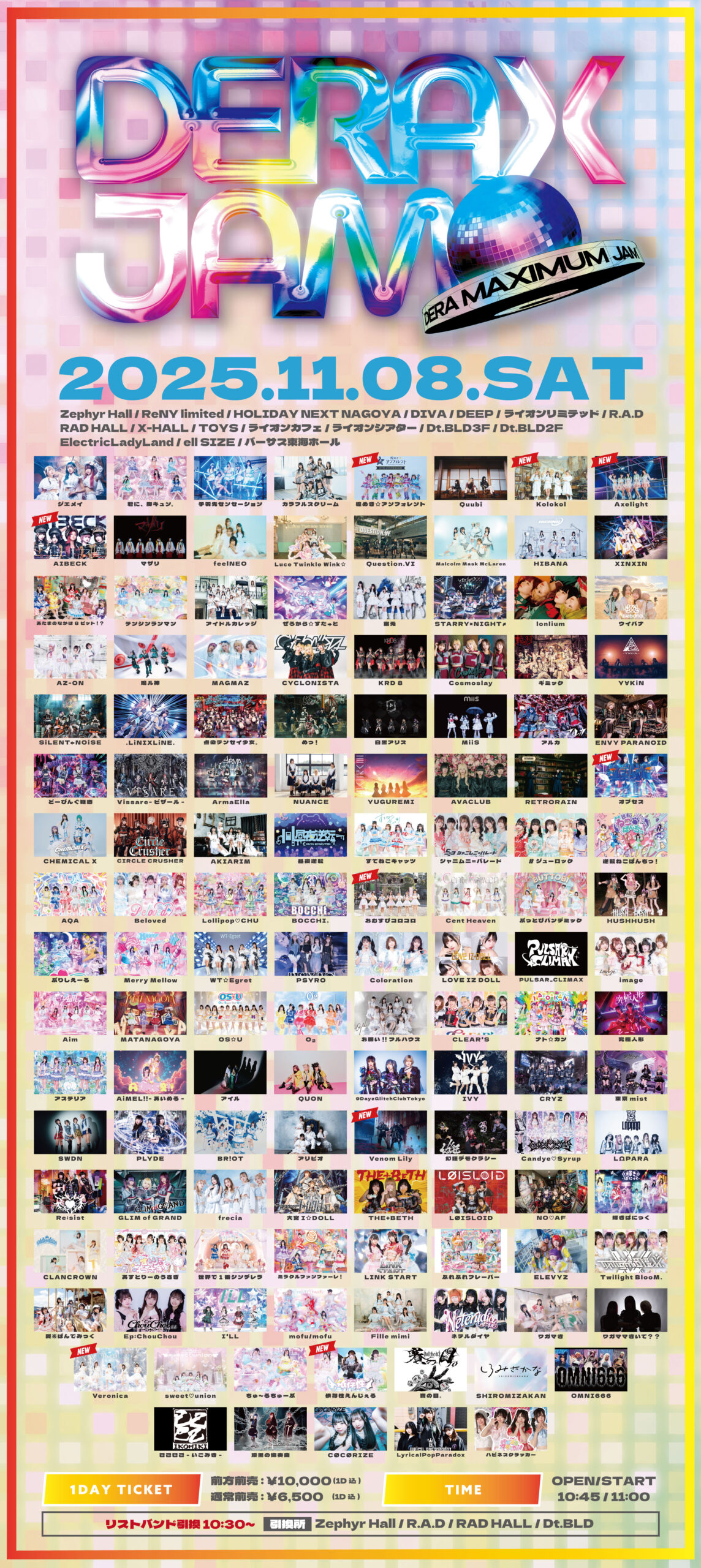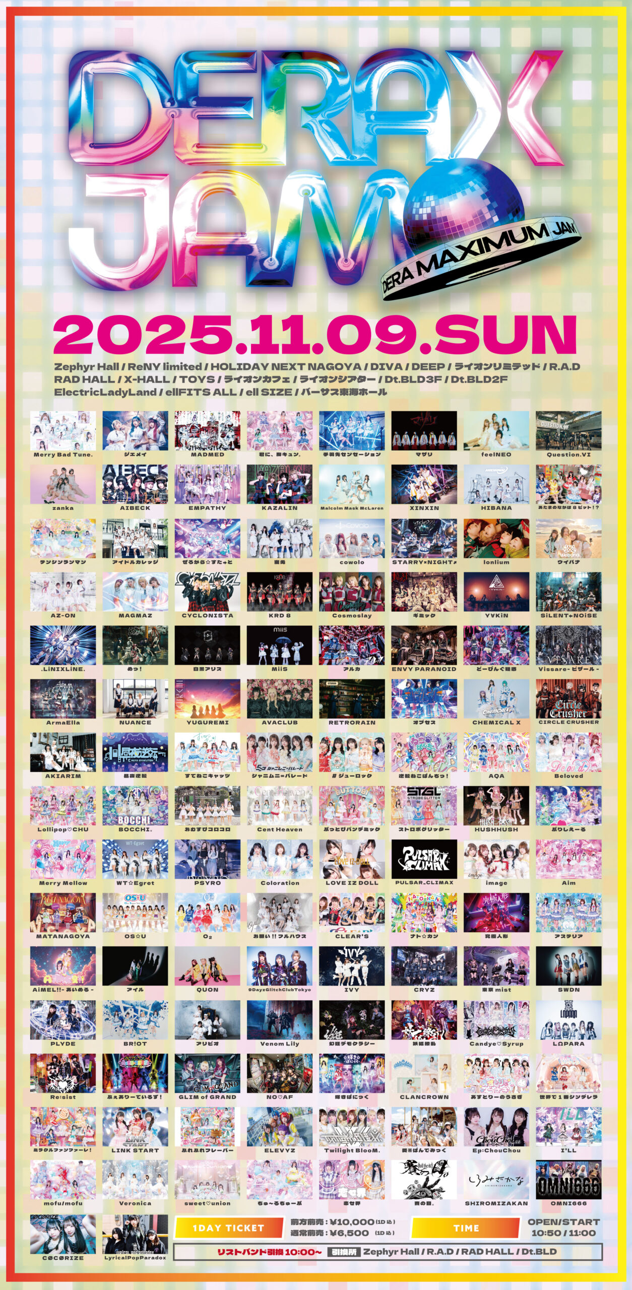10:00 AM - 8:30 PM 「DERA MAXIMAM JAM」 11月 9 @ 10:00 AM - 8:30 PM 「DERA MAXIMAM JAM」 「DERA MAXIMAM JAM」 日時 2025.11.8(土) 会場 Zephyer Hall OPEN […]